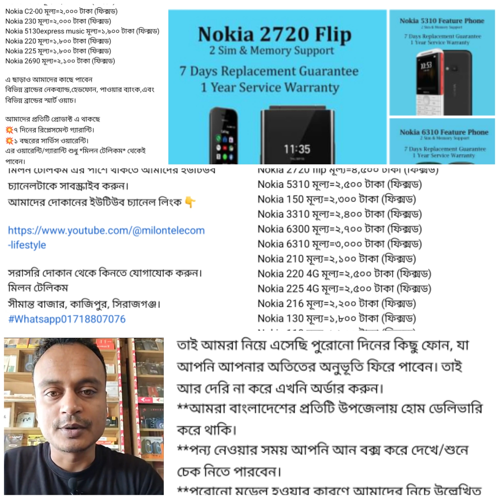এক ভুক্তভোগী ক্রেতা বলেন, আমরা মিলন টেলিকম থেকে নকিয়া ২৭২০ একটা সেট নিয়ে ভালোমতো দেখি তাতে অরিজিনাল সেটের সব ফিচারস্ নাই এবং তা ১০০% কপি সেট। কিন্তু তারা অরিজিনাল বলেই  বিক্রি করছে। আসল বলে নকল চালিয়ে দেওয়া যা সম্পূর্ণ রুপে অবৈধ ও বেআইনি।