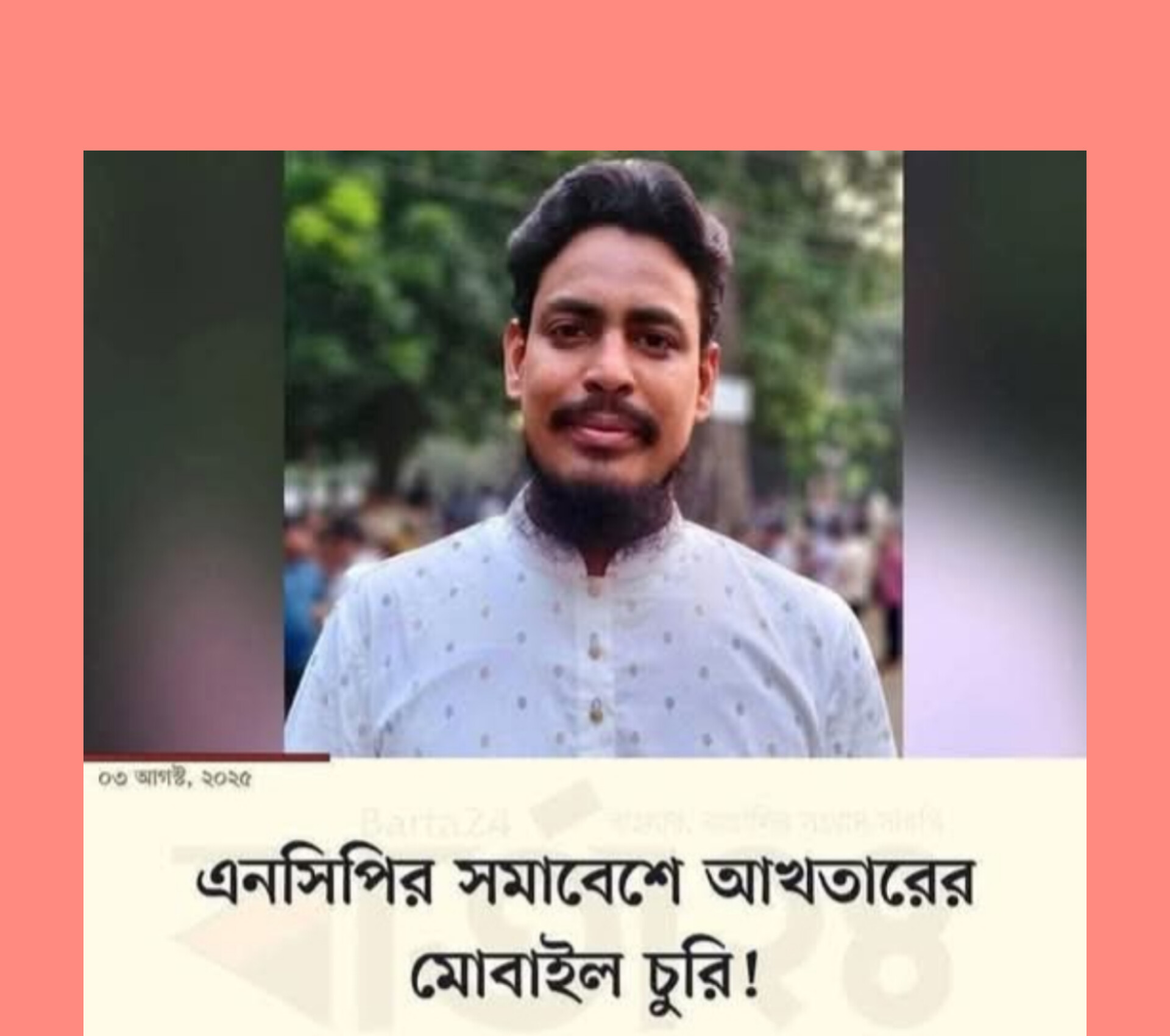 জাতীয় নাগরিক পার্টির (এনসিপি) ‘নতুন বাংলাদেশ ইশতেহার ঘোষণা’ অনুষ্ঠানে দলটির সদস্য সচিব আখতার হোসেনের মোবাইল ফোন চুরির ঘটনা ঘটেছে।