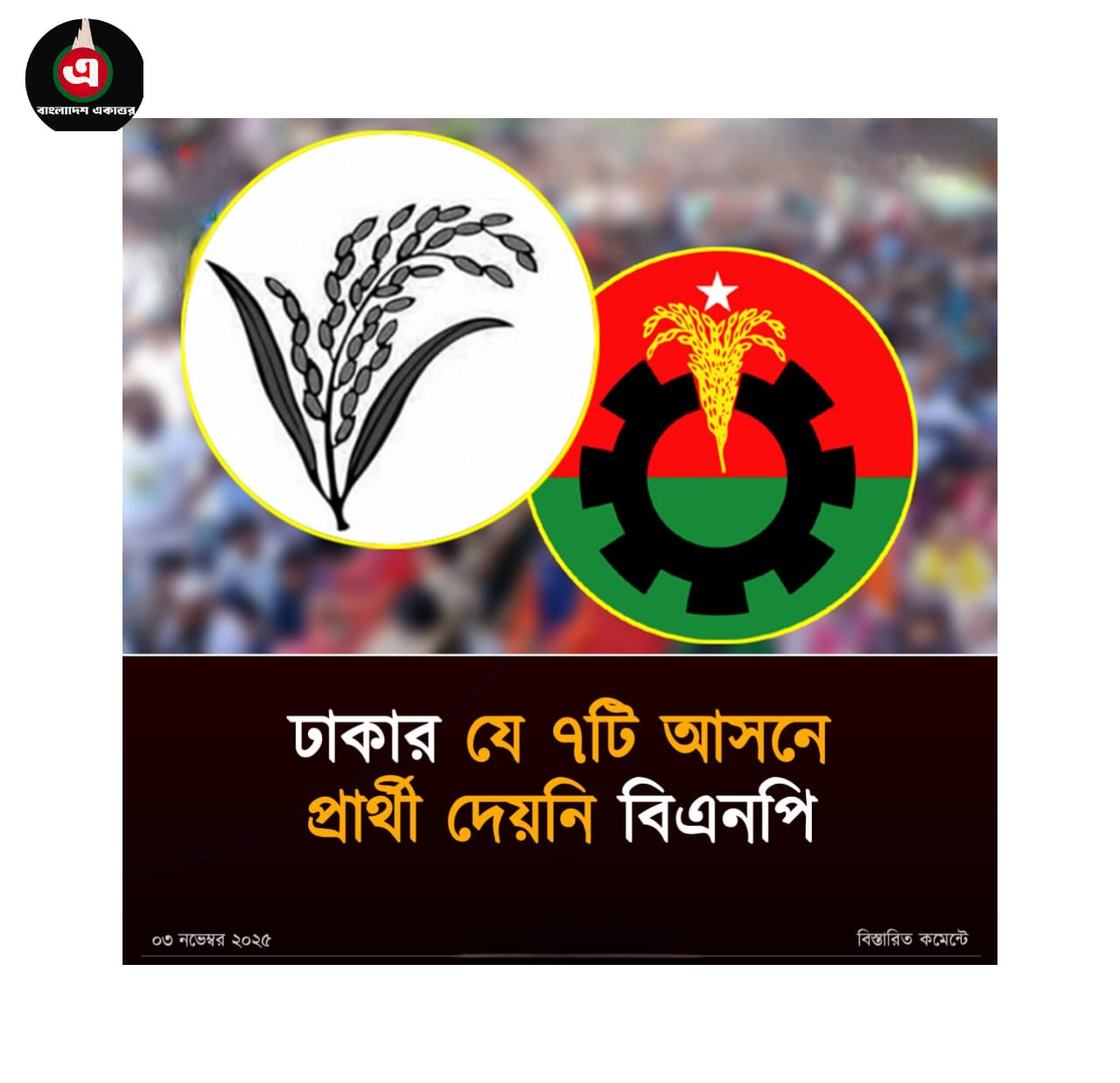 প্রার্থী ঘোষণা না হওয়া আসনগুলো হলো— ঢাকা-৭, ঢাকা-৯, ঢাকা-১০, ঢাকা-১৩, ঢাকা-১৭, ঢাকা-১৮ ও ঢাকা-২০।